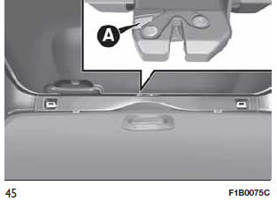 Com a porta da bagageira corretamente fechada, premir o botão B fig. 44. Esta operação provoca o bloqueio de todas as portas e a ativação do alarme (se presente).